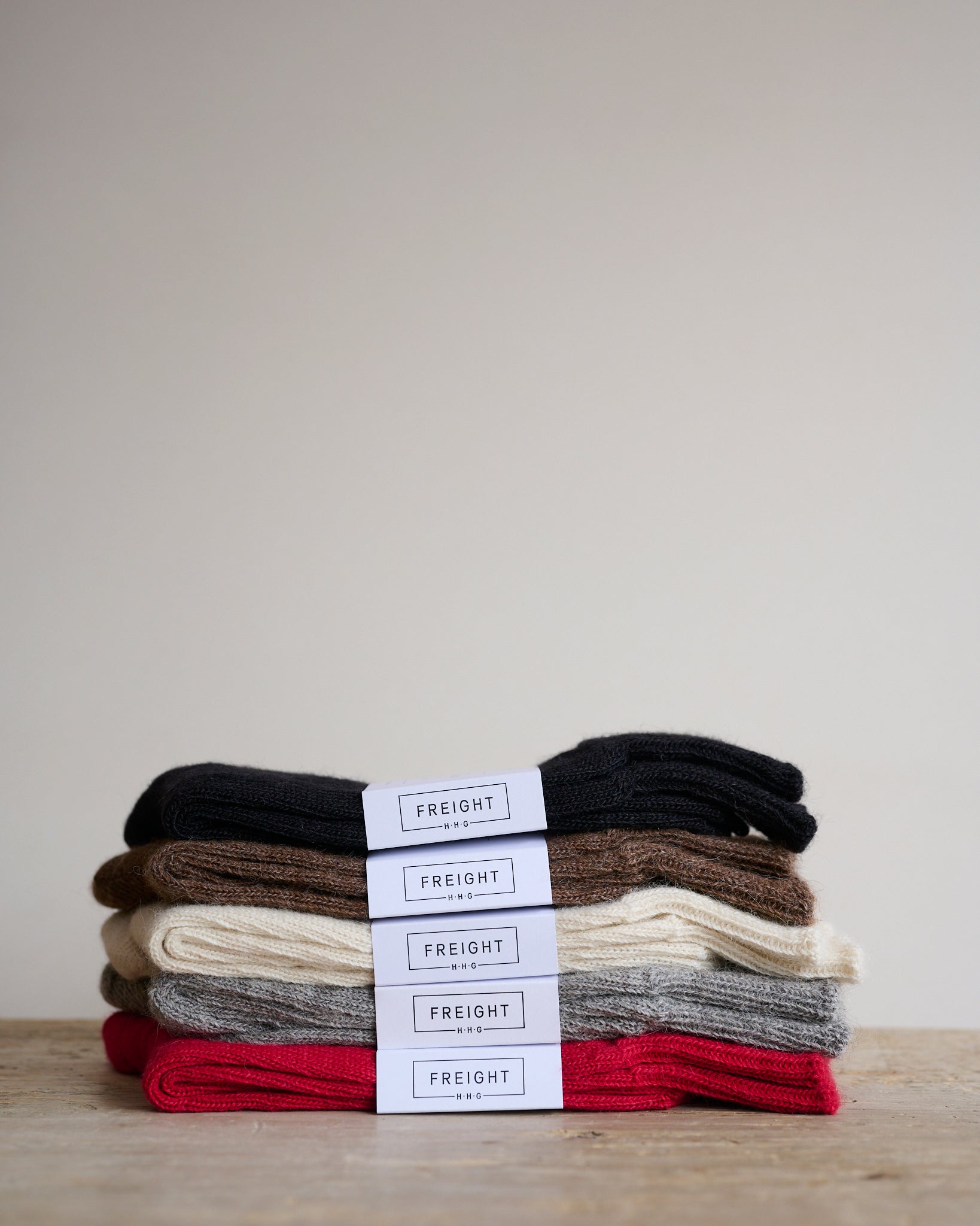 A fine sock made using 82% alpaca yarn – a higher alpaca content than many similar socks on the market. Designed for everyday use, these socks are suitable for wearing with everyday shoes or trainers, the alpaca yarn is soft and comfortable and also helps regulate feet temperature. The cream, pale grey, and brown colourways are all natural undyed colours.