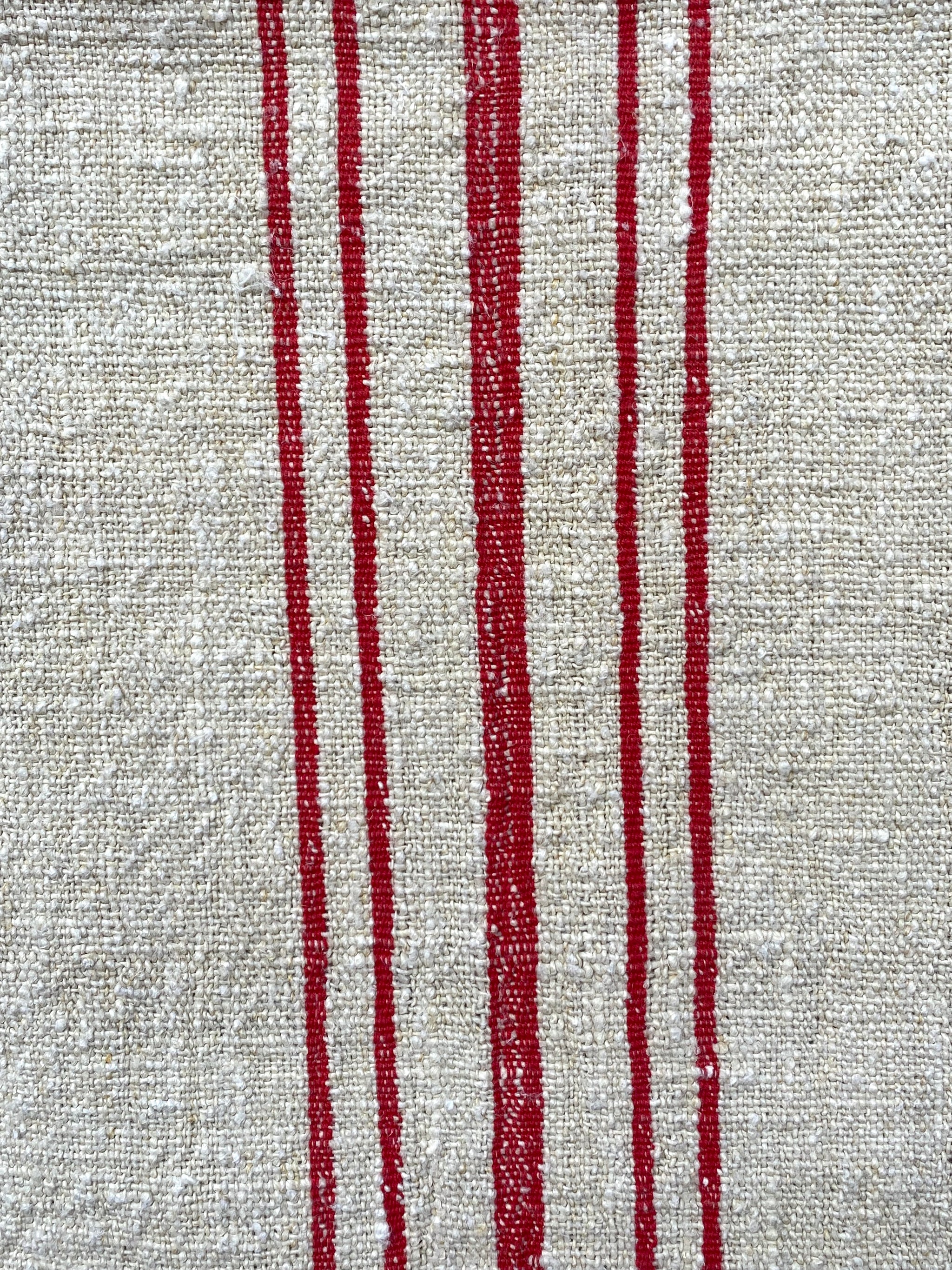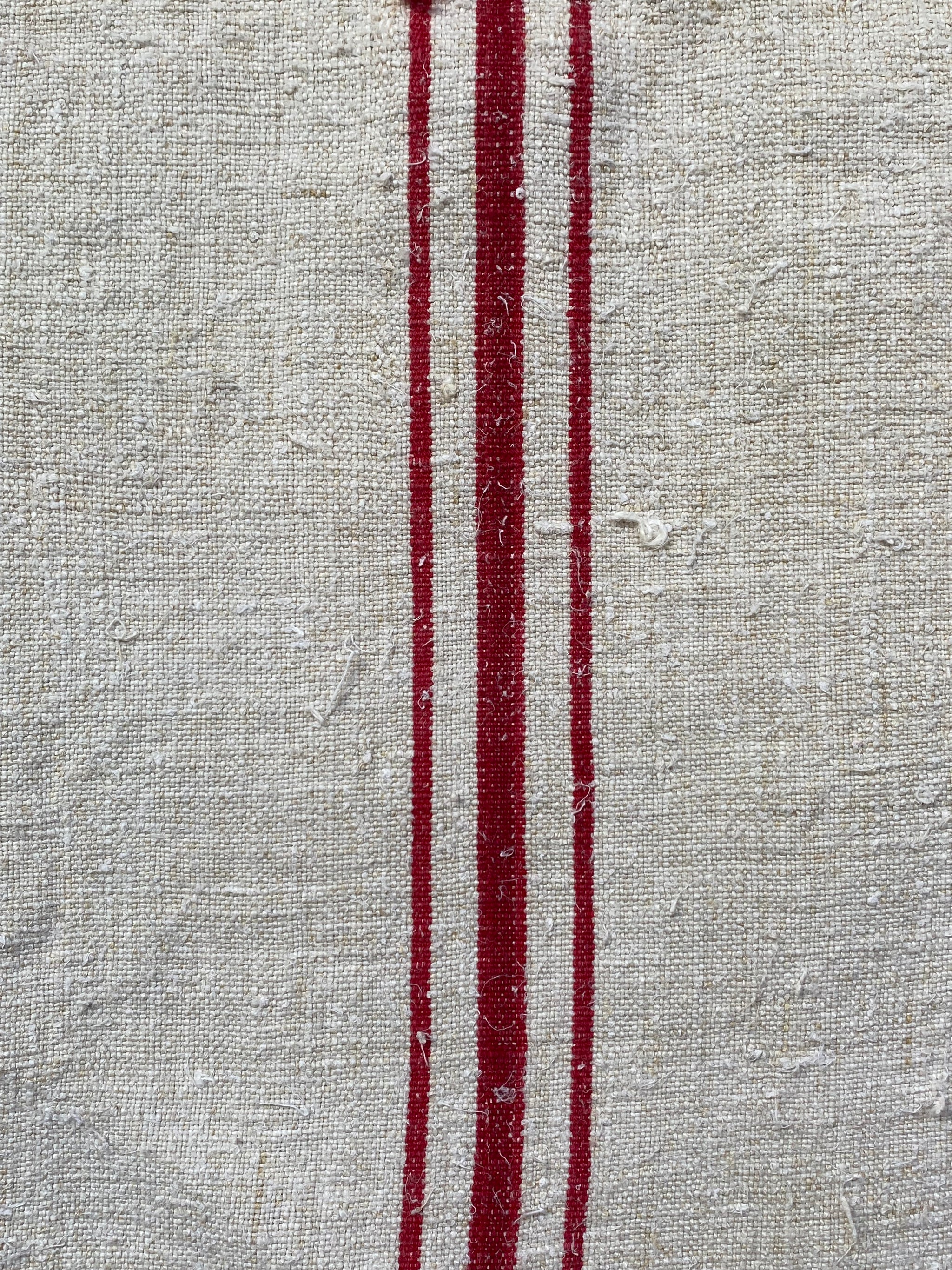 Each piece is unique and the dimensions all vary as well as different line colours, thicknesses and lettering. Some of the sacks have the monograms on. Those with monograms will only have the letters on one side of the pad. These details represented the families from which the grain was being taken to ensure it was returned to the correct people.