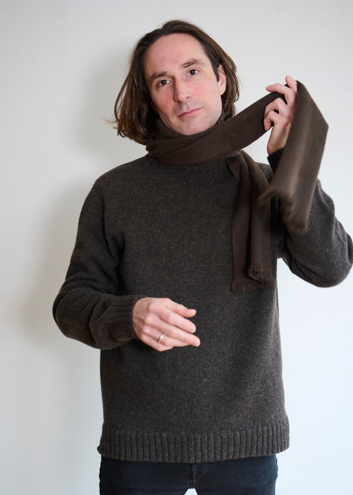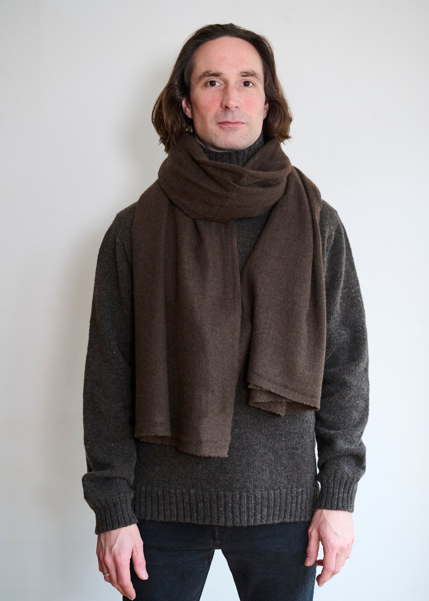 Beautiful hand loomed yak scarves in a stunning rich brown colourway that is completely natural and undyed. These yak wool scarves are hand loomed in the finest quality yarn. The large scarf is a fine 1ply, and the smaller scarf is a more substantial 2ply. Made in Nepal from sustainable resources and ethical production methods. Suitable for men & women.