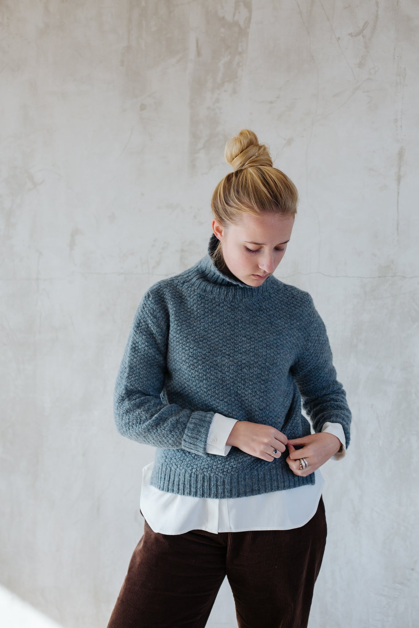 Manufactured in the UK on a Japanese knitting machine, these jumpers have no side seams which keep them lightweight and comfortable. A simple funnel neck, not too high and not too tight allows the jumper to be worn in a number of ways. But most importantly it's a classic style which will not date.