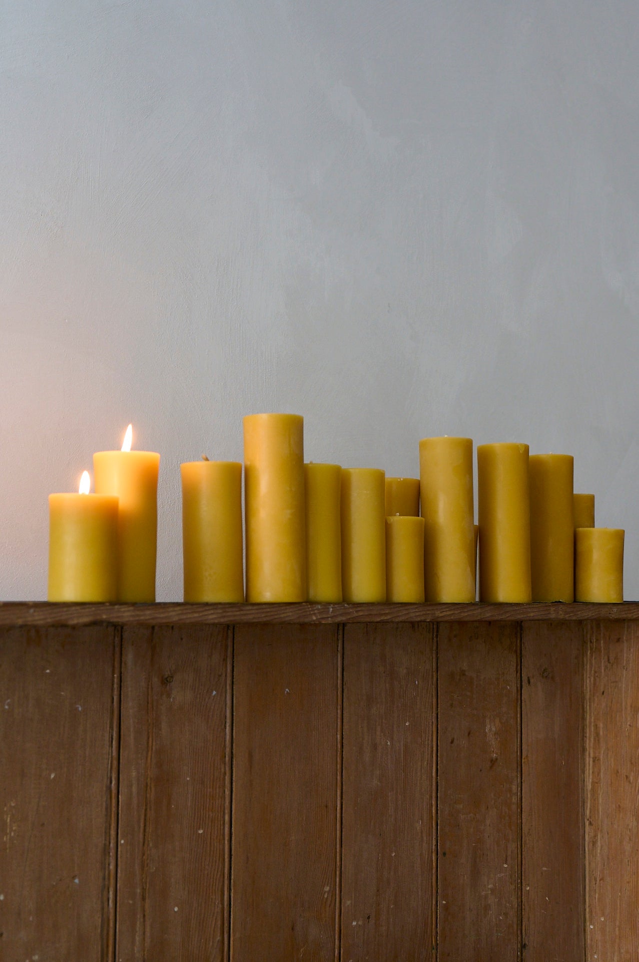Beeswax pillar candles made from British beeswax. What’s not to love.