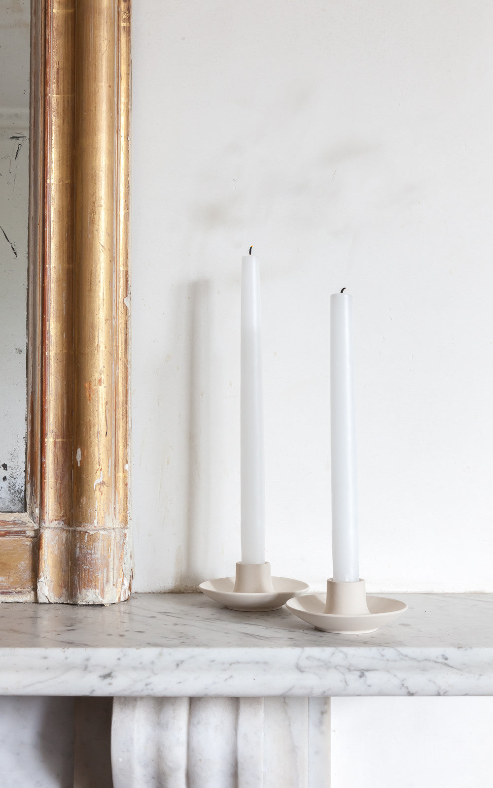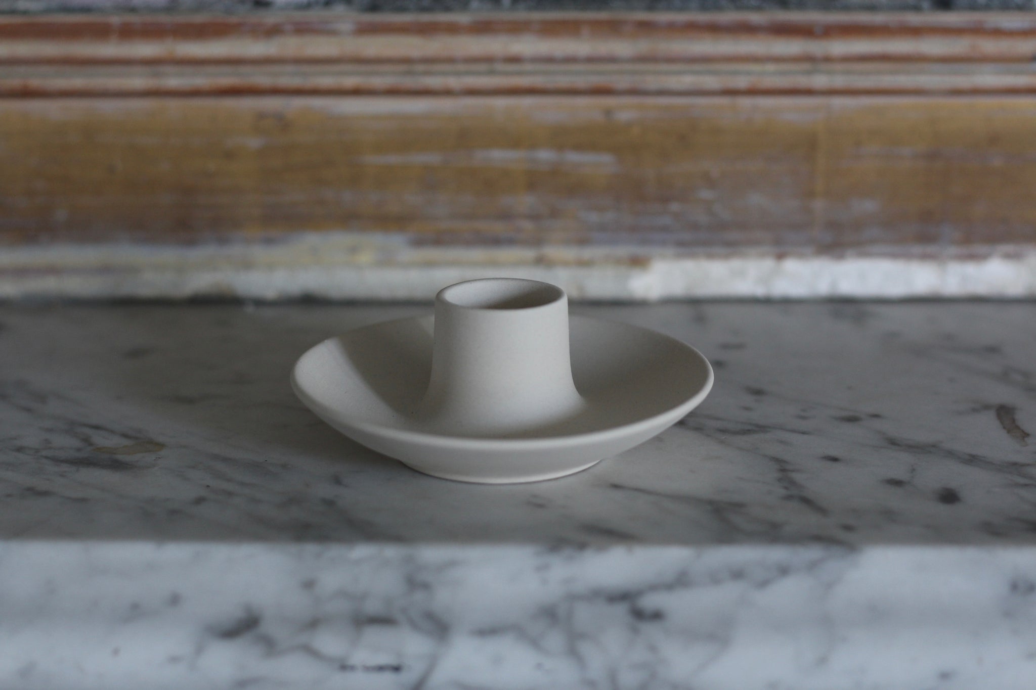 These smart and simple candle holders are made for Freight in Stoke-on-Trent. Designed to hold a single candlestick they have a very clean form which looks lovely with candles of varying heights. The stoneware candle holders come in two different finishes: glazed and unglazed. The unglazed stoneware is fired only once which gives it a lovely matt, grainy finish. The glazed ones have a high shine finish making them very smooth to the touch.