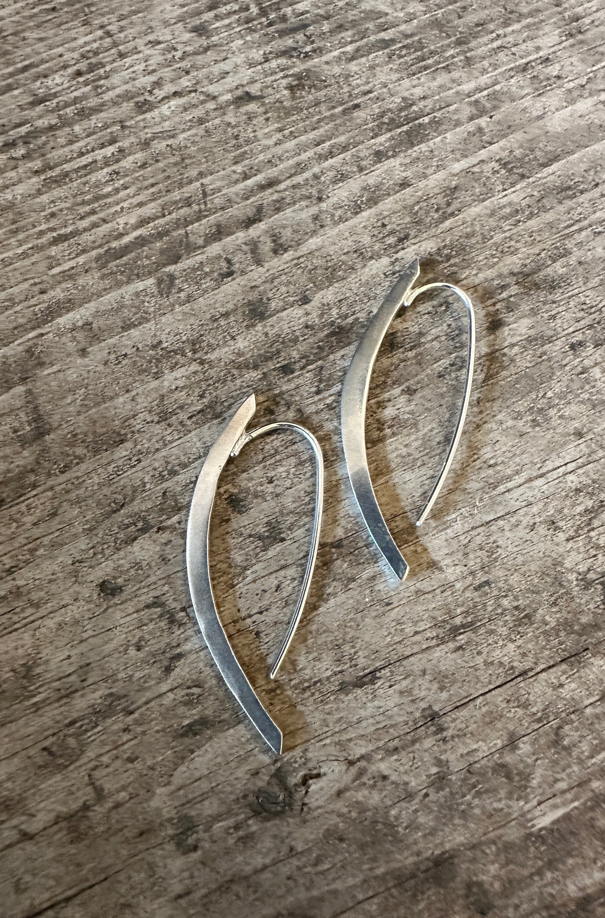 A lovely pair of Gold Vermeil or Silver hand hammered short linear earrings. A simple fitting means they look elegant both front and back with no butterflies in sight.