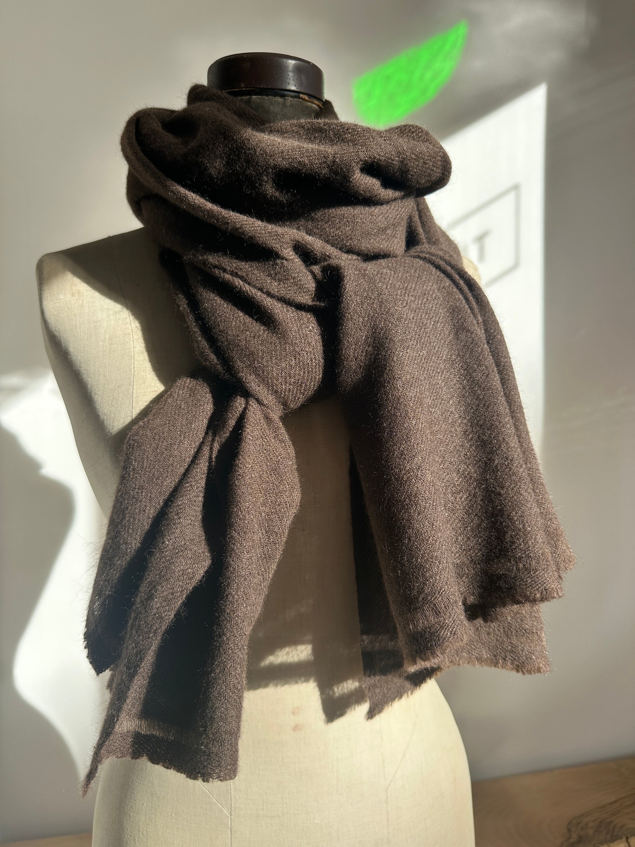 Beautiful hand loomed yak scarves in a stunning rich brown colourway that is completely natural and undyed. These yak wool scarves are hand loomed in the finest quality yarn. The large scarf is a fine 1ply, and the smaller scarf is a more substantial 2ply. Made in Nepal from sustainable resources and ethical production methods. Suitable for men & women.